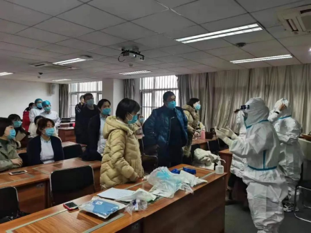 他们对门急诊科室、核酸采集处、PCR基因检测室、发热门诊、检验科核酸检测人员、临床科室、后勤人员等医务人员进行多场次培训,并分片区进行现场督导,确保每个区域、每个环节都能都做到正确、有效落实感染防控措施。这些对于感控人来说,工作虽然繁杂,但每一个环节都不容忽视。