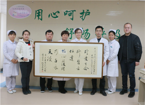 12月6日,呼吸内科接到了一名患者家属亲手写的 “珍爱生命 行医者仁道 贴心护理乃白衣天使”的牌匾。