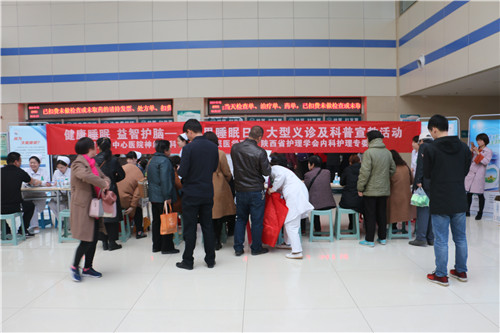 随着人们生活节奏加快,面临睡眠障碍的问题人群越来越突出,常常会有人抱怨自己睡眠质量差,失眠甚至有些人吃了安眠药还是睡不着的问题。为了普及睡眠障碍类疾病人群的认知,提高公众的健康睡眠认识,推动渭南市睡眠医学的发展,在陕西省神经病学分会睡眠障碍学组、陕西省医师协会睡眠专业学组、陕西省睡眠医学联盟的号召下,陕西省护理学会内科护理专业委员会、开云在线登录神经内科、心理科,联合渭南市精神卫生中心睡眠科于3月21日举办2019年世界睡眠日大型睡眠障碍疾病义诊暨公益讲座活动。