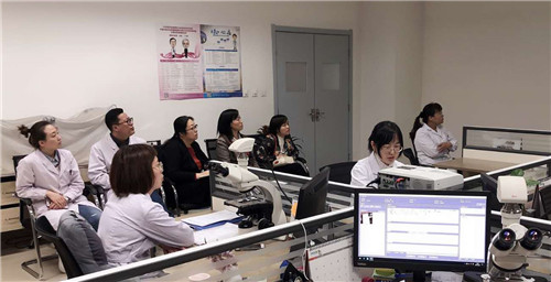 本次多学科讨论会先由病理科主治医师王佩以幻灯片的形式系统讲解甲状腺细针穿刺适应症和术前要求、细针穿刺细胞方法学以及甲状腺细胞病理学Bethesda报告解读。汇报结束后,大家积极讨论,耳鼻喉科郑建军主任对病理工作给予充分肯定,并交流临床中遇到的问题,尹主任形象客观的进行了答疑解惑。内分泌刘莲叶主任也提出关于平日甲状腺细针穿刺中遇到的问题,功能科周永峰主治医师从影像学角度进行了专业解读。最后通过此次学习交流活动不仅优化了甲状腺细针穿刺流程、穿刺手法、诊断报告的解读,也更促进多学科之间交流和学习。