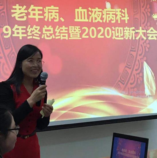 会上,以一首《我和我的祖国》歌声中拉开帷幕。科主任周淑亚从科室发展,医疗服务能力,教学工作,党建等工作回顾总结了2019年科室各项工作所取得的成绩,并明确了2020年工作重点,对主要工作进行安排部署。周主任从门诊量,住院患者总人数,床位使用率,骨髓穿刺与活检数,以及危重患者收治情况等十余方面,与往年进行对比,认真、深刻地分析了指标异常的原因及应对策略。表扬了优秀的医生、护士,同时也指出存在问题,给大家制定明年奋斗的目标。