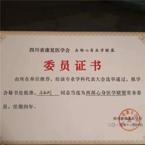 12月27日,预会选举产生了西部心身医学联盟名誉主席、联盟主席、轮值主席、副主席及联盟委员等,成立了西部心身医学联盟。在大会上,开云在线登录被确定为西部心身医学联盟成员单位,精神心理科牛永利副主任医师当选为西部心身医学联盟常务委员并领取了入盟牌。