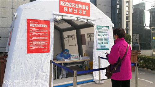 门诊预分诊处设有两个应急救援帐篷,分别对特殊发热患者和普通发热患者进行询问和登记,并由预检分诊人员送往发热门诊进行进一步诊治。“这些姑娘们每天送患者去发热门诊就要跑四五十趟,生怕把哪个患者在去往发热门诊的路上流失。”担任门诊预检分诊疫情防控的科护士长南江波说道。