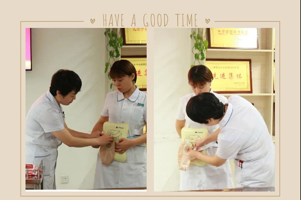 普通外科党莉、党红娟做了更换造口袋的现场演示。工作坊内容实用,接地气,贴近临床,将理论与实践相结合,充分发挥小组合作、体验、互动等优势。大家积极参与、踊跃动手,按照老师的指导一步一步规范完成每个操作步骤,认真学习,反复练习,夯实了造口知识及技能。