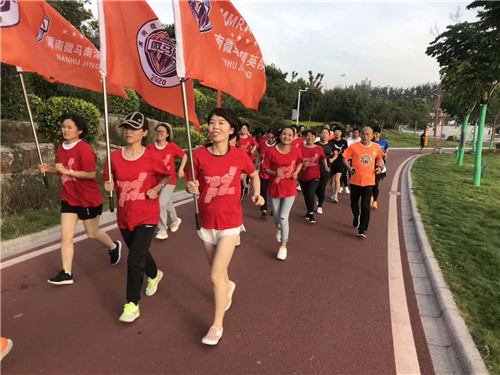 活动开始,身着整齐红色队服的产科医护人员由魏满莉主任带领,和渭南健身跑步微马团队数十名队员一起,奔跑在微波荡漾的南湖湖畔。踏着整齐的步伐,在一声声嘹亮的“产科加油,产科最棒”“人人学急救,急救为人人”的口号中,队友们互相击掌,互相鼓励。跑完一圈儿又一圈,坚持到最后目标里程。大家个个汗流浃背,脸上洋溢着胜利的喜悦。