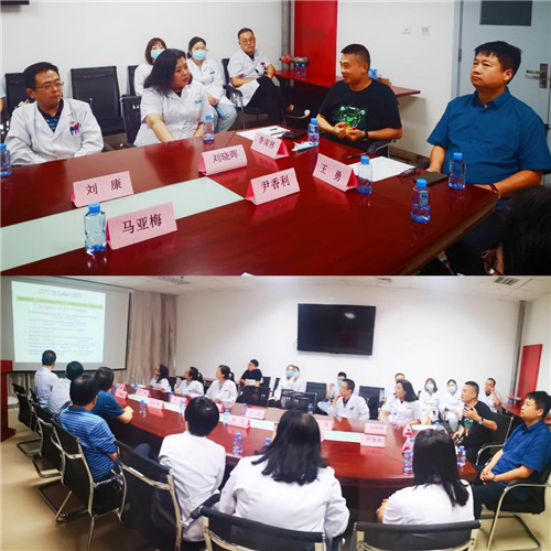 病例讨论环节由乳腺中心李晓辉,宋少伟和卜智斌三位副主任医师分别以《乳腺导管原位癌保乳手术切缘》《叶状肿瘤的诊断及治疗》和《新辅助化疗后手术若干问题》为题进行病例汇报,并提出诊断及治疗上的困惑。病理科崔旭主治医师的《乳腺纤维上皮性肿瘤的鉴别诊断》对一些临床困惑做了解答。病理科尹香利主任以《Phyllodes tumors of breast—A comprehensive literature review》全英文的文献综述讲解了国外最新叶状肿瘤的病理诊断,以及手术切缘等临床医生关切的相关问题。MDT团队成员讨论发言踊跃,气氛热烈。