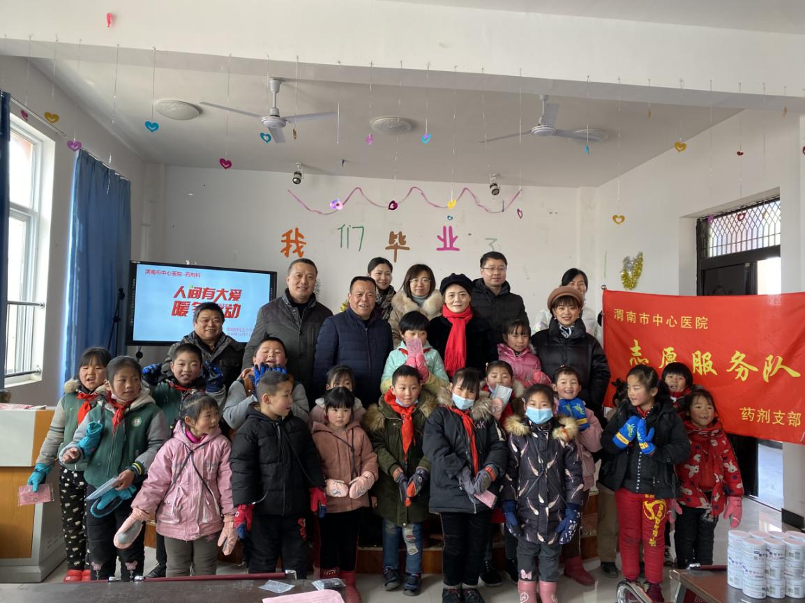 2020年年末,市中心医院药剂支部党员代表与药剂科爱心志愿者来到崇凝镇线王小学,为该校46名贫困家庭的留守儿童送去了加棉手套、口罩等冬日用品,同时为全校各班级送去了护手霜与冻疮霜。