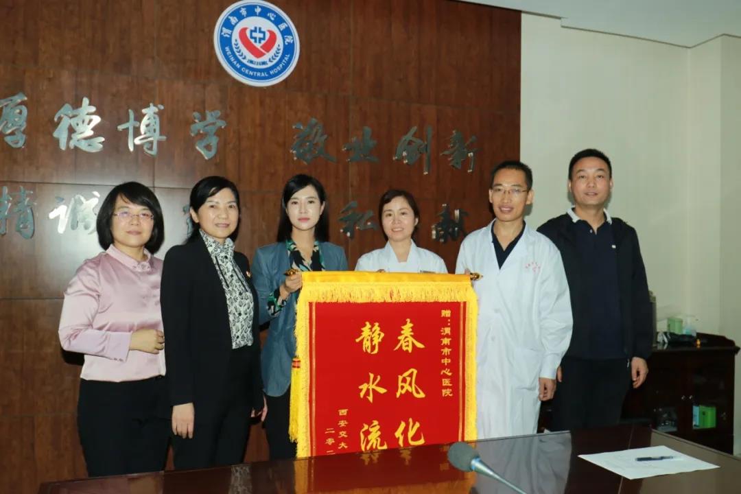 座谈会上,转岗医师代表西安交通大学医学部向市中心医院送“春风化雨 静水流深”锦旗。